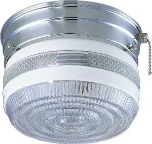 White/clear glass shade with pull chain. 5-1/4" diameter x 4-3/4" height x 7-1/8" base extension. Uses white, medium base bulbs, 60 watt maximum (not included).